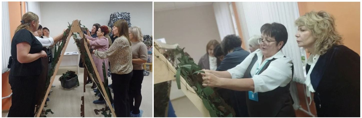 О взаимодействие школы-интерната с социальными партнерами в рамках формирования гражданско-патриотических чувств и качеств у обучающихся познакомила гостей семинара Яковлева И.С., воспитатель ГКОУ «Котовская школа-интернат». Представитель общественного движения «Волонтеры г. Котово, Волгоградской области «СВОИ» Буткова Е.В. провела для участников семинара мастер-класс по плетению маскировочных сетей для СВО.