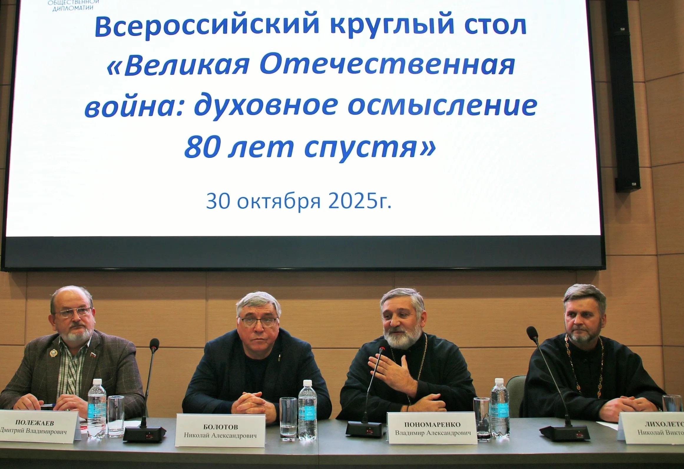 30 октября 2025 г. в конференц-зале Волгоградского государственного социально-педагогического университета прошел «круглый стол», организованный Волгоградской епархией, Волгоградским педагогическим университетом и Дипломатической академией Министерства иностранных дел Российской Федерации, на тему «Великая Отечественная война: духовное осмысление 80 лет спустя».