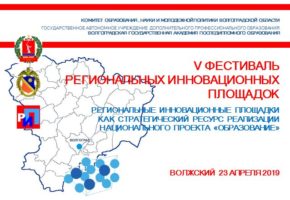 Согласно плану работы комитета образования, науки и молодежной политики Волгоградской области 23 апреля 2019 года состоится значимое событие для образовательных учреждений Волгограда и области, работающих в инновационном режиме, – V фестиваль региональных инновационных площадок «Региональные инновационные площадки как стратегический ресурс реализации национального проекта «Образование». Организатором Фестиваля является государственное автономное учреждение «Волгоградская государственная академия последипломного образования». Фестиваль пройдет в пятый раз. Общее количество участников с 2015 по 2018 годы превысило 1000 человек. В V Фестивале примут участие 300 представителей образовательных учреждений дошкольного, общего, дополнительного и среднего профессионального образования региона.